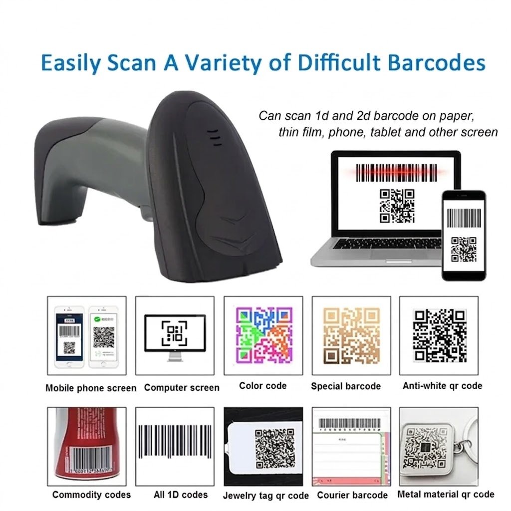 Product Specification: 2D Wireless Barcode Scanner with Base |